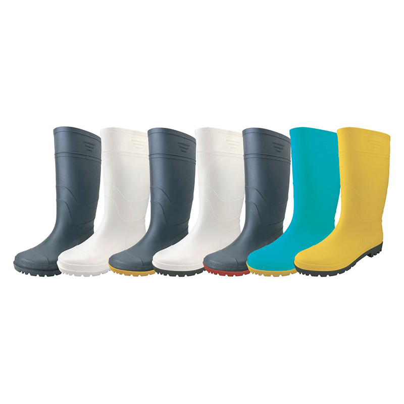 SS031 PVC light industrial protective boots are practical protective shoes suitable for a variety of industrial and factory working environments. The upper and outsole are made of wear-resistant and corrosion-resistant PVC material, with good waterproof performance, suitable for wearing in damp, oily or chemical-rich workplaces. This product is not equipped with steel toe, midsole, insole and lining. The overall design is lighter, which is convenient for reducing the burden on the feet when worn for a long time and improving work flexibility.